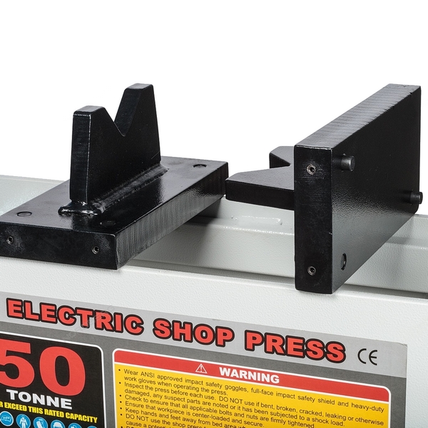 Пресс гидравлический ручной напольный с усилием 50 тонн укомплектован защитным клапаном от превышения давления, поперечным перемещаемым столом, механической ручной лебедкой для перемещения стола, V-образным блоком.