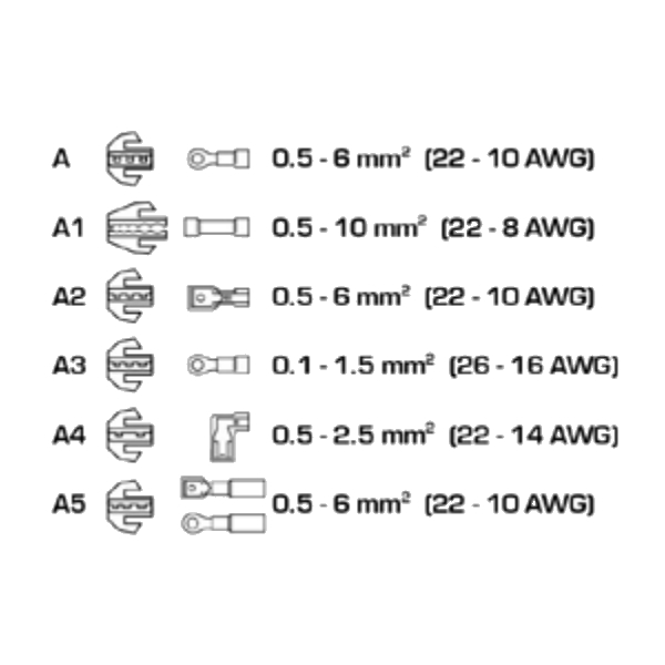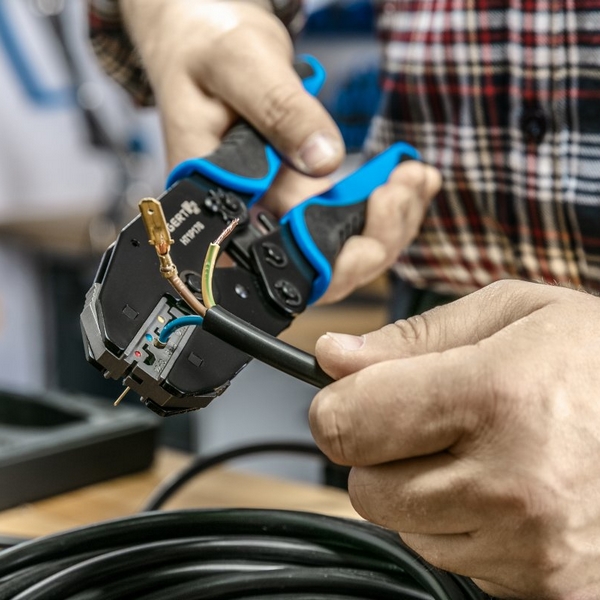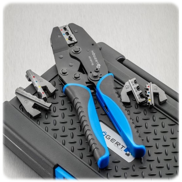 Профессиональные клещи Hoegert с набором из 6 сменных губок предназначены для качественного обжима клемм и наконечников на электрических кабелях. Применяются при электромонтажных работах в телекоммуникационной сфере, при ремонте и обслуживании автотранспорта и другой техники, оборудования и т.д.