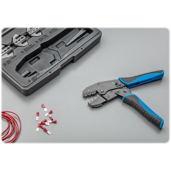 - храповой механизм гарантирует точное выполнение соединений, повторяемость обжима клемм на кабеле;