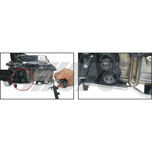 Специализированное приспособление JTC применяется для обслуживания 7-скоростной коробки передач с двойным сцеплением на автомобилях концерна Volkswagen AG и предназначено для снятия нагрузки с плунжеров мехатронного блока при установке инструмента между рычагом сцепления и корпусом редуктора.