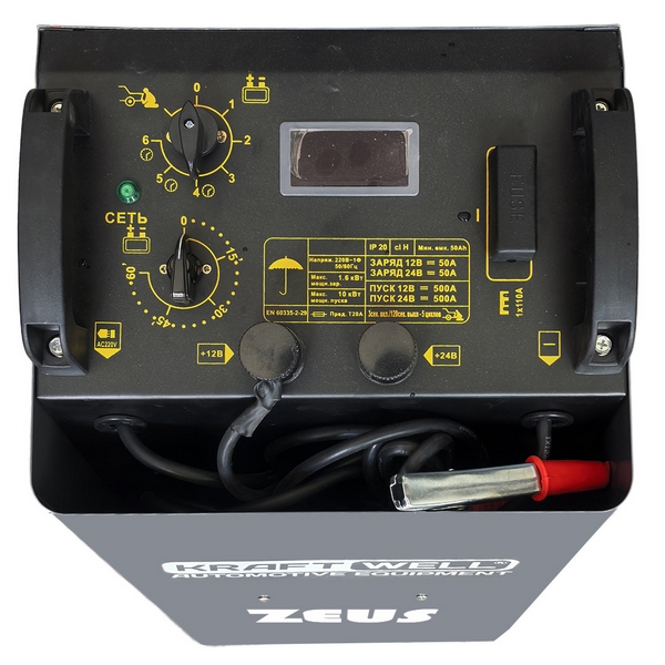 Устройство KraftWell предназначено для зарядки свинцово-кислотных автомобильных аккумуляторов напряжением 12 или 24 В, а также для запуска двигателя транспортного средства при глубоко разряженной батарее. Применяется при обслуживании легковых и грузовых автомобилей, автобусов, специальной и другой техники.
