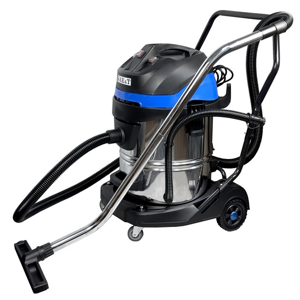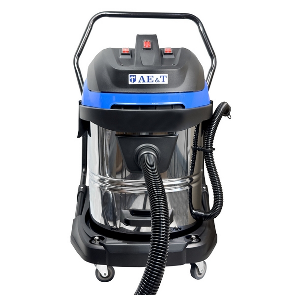 Мощный профессиональный пылесос AE&T с вместительным баком объемом 60 л предназначен для сухой и влажной уборки различных поверхностей в слесарных и столярных мастерских, автосервисах, на строительных объектах и т.д.