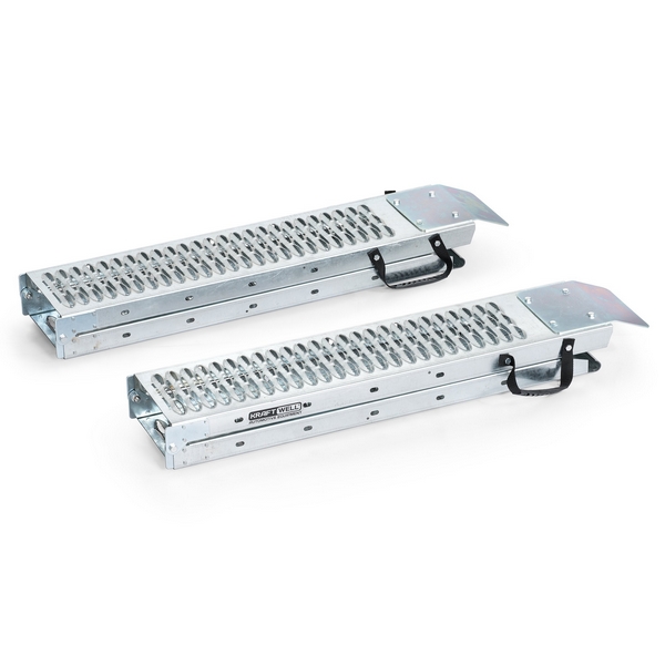 Комплект из двух стальных рамп (аппарелей) KraftWell грузоподъемностью 600 кг, длиной 1950 мм и шириной 220 мм предназначен для заезда и съезда мотоциклов, квадроциклов, снегоходов и другой легкой техники, а также специального оборудования на платформы, эстакады, в фургоны и прицепы. Трапы применяются в мотосервисах и салонах, мобильными мастерскими при выездных работах, компаниями по транспортировке техники, самими владельцами в гаражах и т.д.