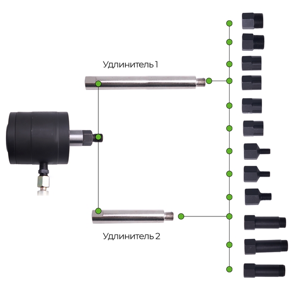 - сжатый воздух обеспечивает высокую тяговую силу, что позволяет с легкостью извлекать даже сильно закоксованные форсунки без риска повредить крепления;