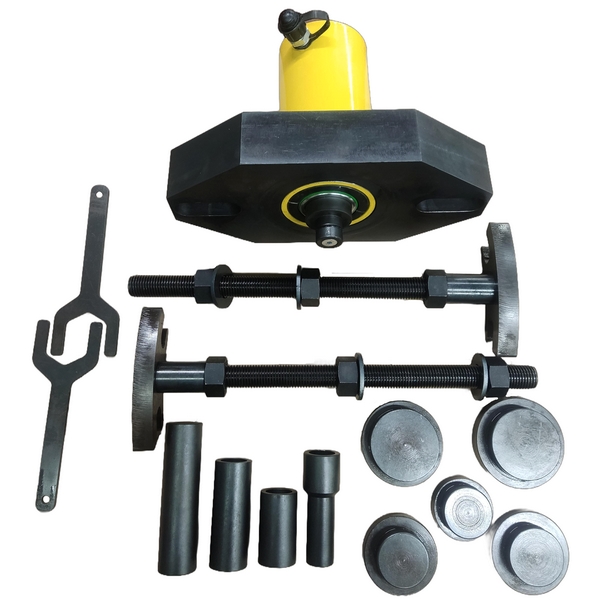 - плавная подача усилия через выпрессовочный механизм — нет ударной нагрузки на ступицу, цапфу и подшипники;