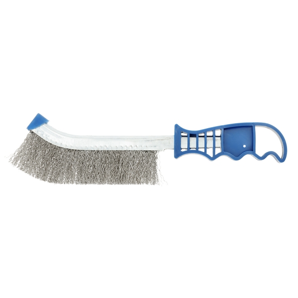 - волнистая щетина толщиной 0,3 мм выполнена в 1 ряд, а общая длина инструмента составляет 250 мм – такие решения обеспечивают легкое маневрирование и доступ к труднодоступным местам;