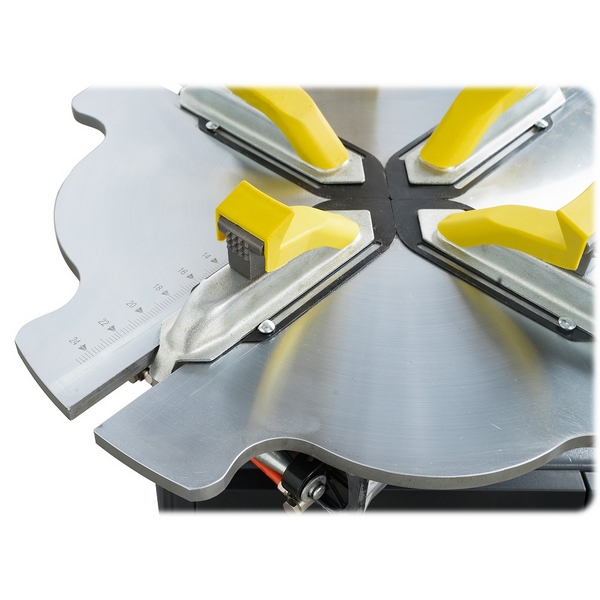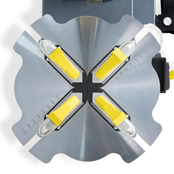 - рабочий стол специальной формы с самоцентрирующимся четырехкулачковым механизмом зажима дисков имеет 1 скорость вращения;