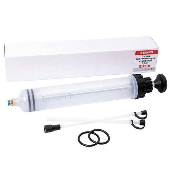 Пластиковый шприц Stanko рабочим объемом 500 мл предназначен для извлечения или точной и аккуратной заливки различных технических жидкостей. Применяется при ремонте и обслуживании автомобилей, мотоциклов, промышленного оборудования и т.д.