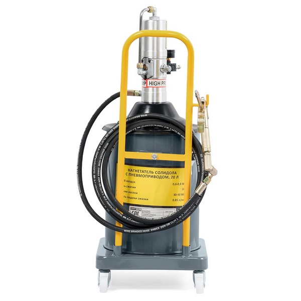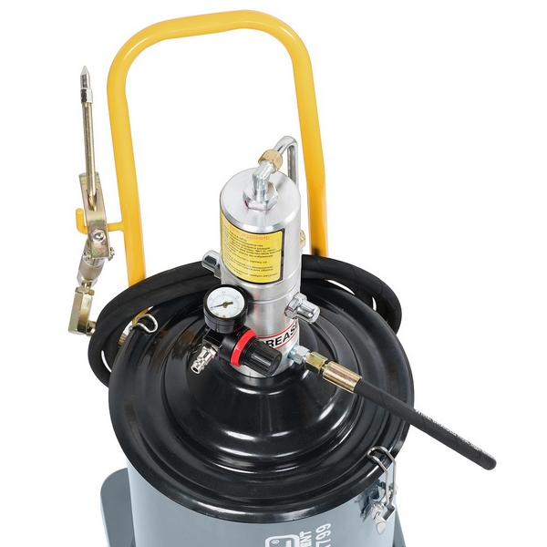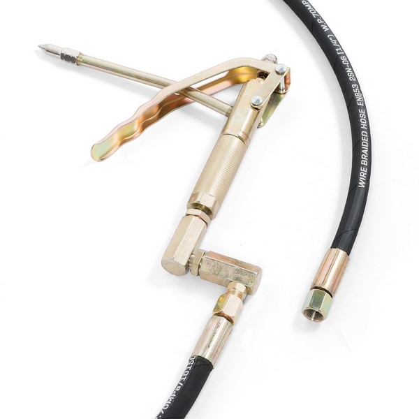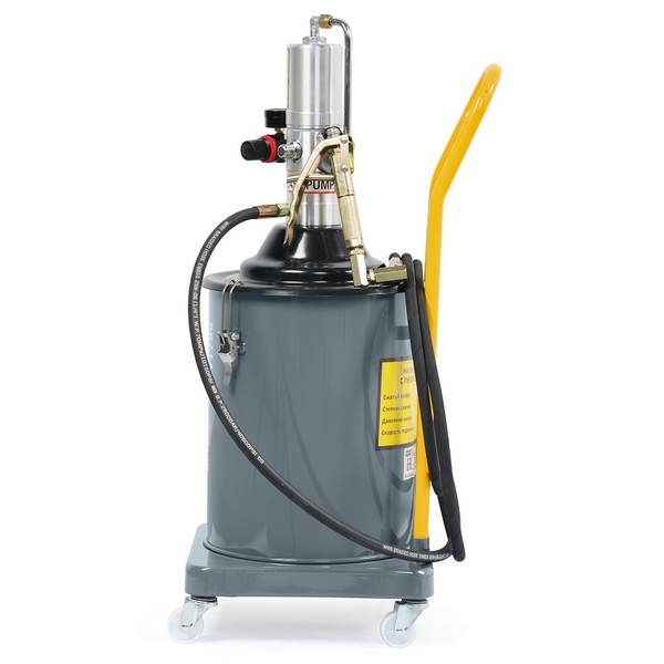 - для раздачи смазки имеются шланг высокого давления длиной 2,5 м и механический металлический пистолет с насадками и шарнирным соединением;