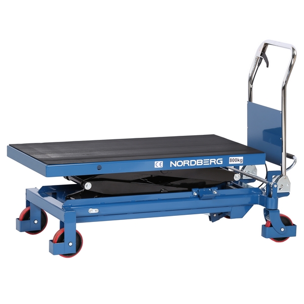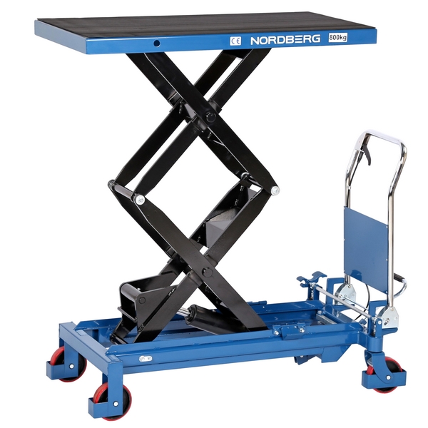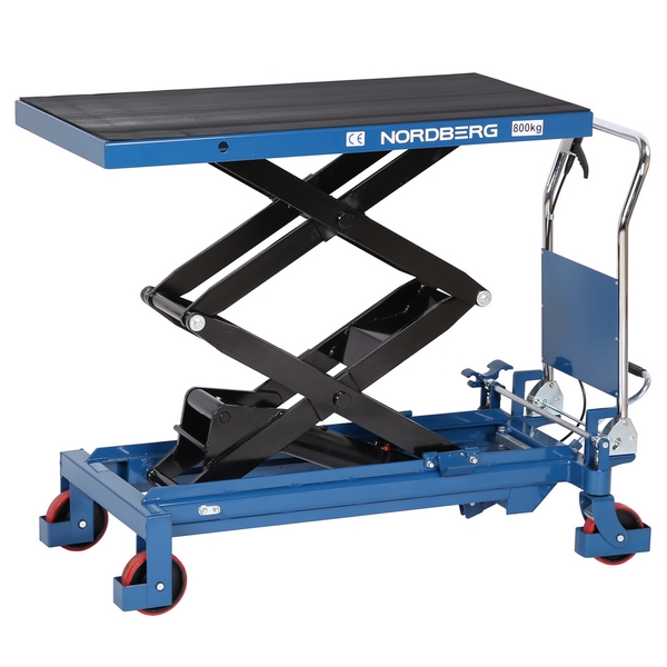 Платформенная тележка с мощным ножничным подъемным механизмом Nordberg служит для подъема различных грузов массой до 800 кг и перемещения их по территории ремонтного цеха, склада, производственного помещения, автотранспортного предприятия и т.д.
