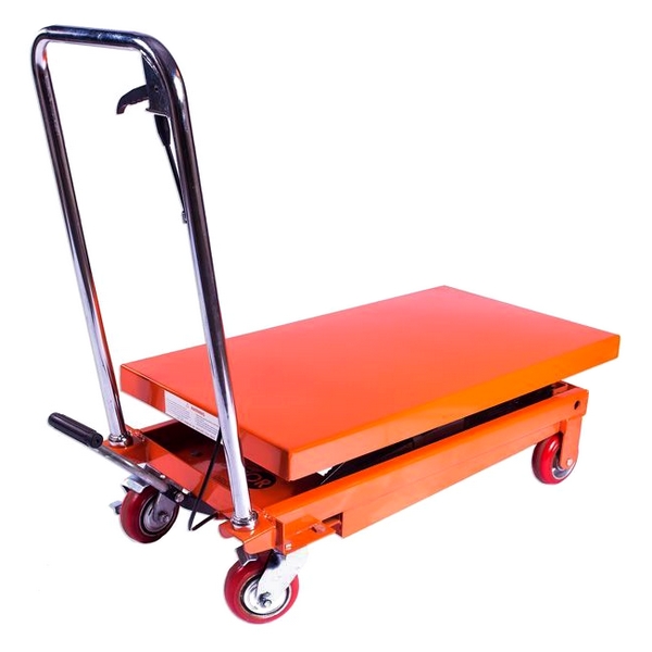 Платформенная тележка (стол) TOR с ножничным механизмом и гидравлическим приводом представляет собой подъемно-транспортное средство для перевозки различных грузов и их подъема-опускания. Применяется в складских помещениях, на автотранспортных, ремонтных, производственных и иных предприятиях.