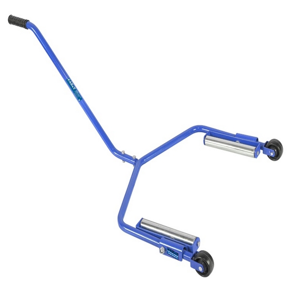 Тележка представляет собой простую, но крепкую металлическую конструкцию. Она оснащена двумя опорными роликами под колеса, собственными колесами и рукояткой. Применение тележки значительно облегчает работу персонала, ускоряет процесс шиномонтажа, повышает эффективность предприятия.