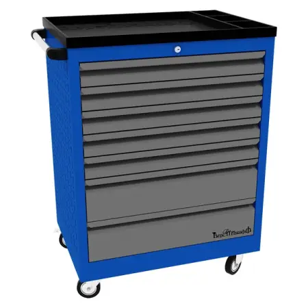 Тележка позволяет разместить и хранить в порядке и с защитой от пыли, грязи и прочих внешних воздействий ручной, электрический или пневмоинструмент, оснастку, аксессуары и другие сопутствующие принадлежности.