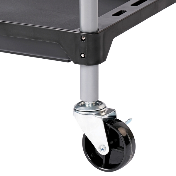 - 4 прочных вращающихся колеса, два из которых оснащены тормозами, обеспечивают легкое перемещение тележки;