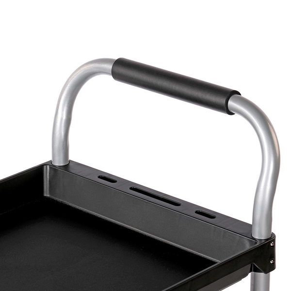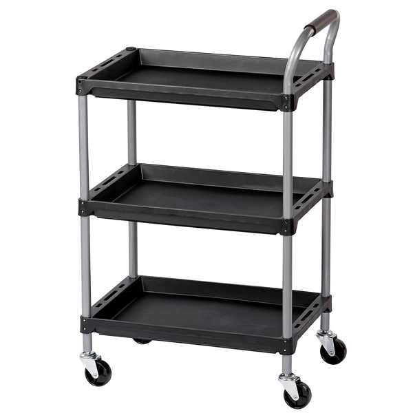 Тележка с тремя открытыми полками Nordberg предназначена для размещения и перемещения по территории цеха к месту проведения работ инструментов, оснастки, принадлежностей, деталей, емкостей с жидкостями и иных предметов. Сфера эксплуатации: автосервисы, автомастерские, тюнинг-ателье, СТО и т.д.