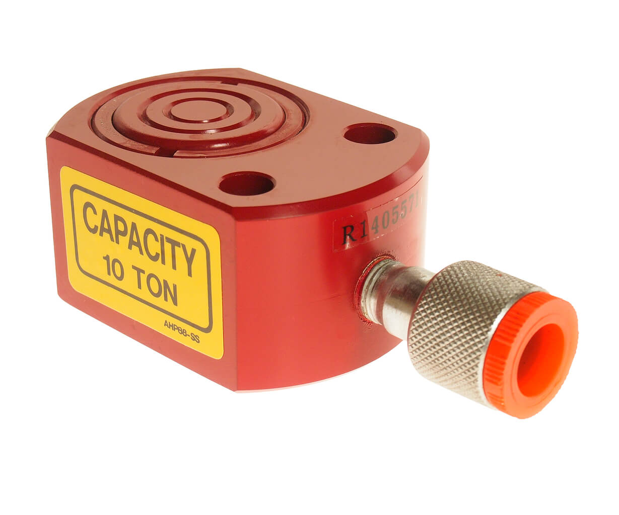Все модели изготовлены из среднеуглеродистой стали методом литья, что обеспечивает надежную эксплуатацию даже при работе в производственных условиях. Гидроцилиндры оснащены возвратными пружинами, которые обеспечивают продолжительную эксплуатацию при повышенных нагрузках. Хромированная поверхность поршня противостоит коррозии и механическим повреждениям. К гидроцилиндрам предлагается широкий ассортимент аксессуаров для крепления на штоке, корпусе либо основании цилиндра, что делает устройство еще более универсальным. Снабжены быстросъемными соединителями. Усилие: 10 т. Ход штока: 7/16”. Объем масла на цикл: 17.5 см3. Внутренний диаметр цилиндра: 45 мм. Длина с задвинутым штоком: 43 мм. Длина с выдвинутым штоком: 54 мм. Быстрый возврат: нет. Внешний диаметр поршня: 22.2 мм. Внешний диаметр цилиндра: 57 мм. Штуцер: 1/4 NPT Габаритные размеры: -/-/- мм. (Д/Ш/В) Вес: - гр.