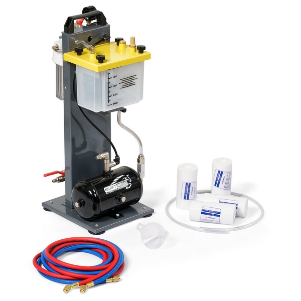 Пневматическая установка KraftWell применяется для быстрой и эффективной очистки контура автомобильной системы кондиционирования от загрязнений, масла, влаги и остатков старого хладагента перед заправкой нового, что положительно сказывается на восстановлении производительности системы и продлевает срок её службы. Сфера эксплуатации: автосервисы, автомастерские, СТО и т.д.