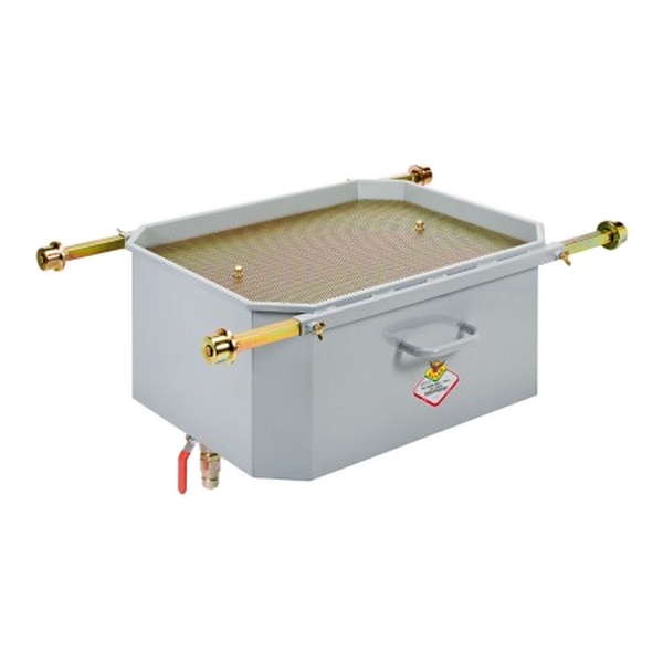 Установка RAASM 42055 оснащена водобойной решеткой, предотвращающей обратный поток, используемой как опорная поверхность для стекания масляных фильтров. Крепкие и надежные выдвижные опоры регулируются под ширину смотровой ямы в диапазоне 84-125 см. Снизу ёмкости имеется быстроразъемное соединение. При помощи него слитое отработавшее масло может перекачиваться из бака регенерации в цистерну хранения всасыванием посредством откачивающего насоса.