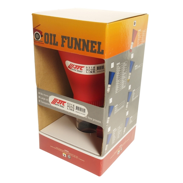 Воронка JTC предназначена для аккуратной заливки моторного масла. Применяется в автосервисах, автомастерских, на СТО, в персональных гаражах и т.д.