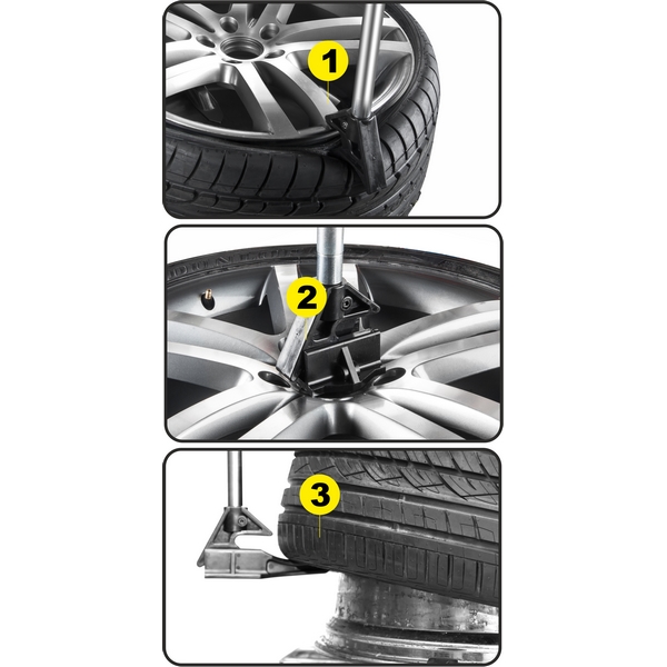 Устройство представляет собой пневматический цилиндр со штоком, на конце которого установлена пластиковая нажимная головка. Она обеспечивает дополнительный нажим борта покрышки, освобождая руки оператора и делая демонтаж или монтаж низкопрофильных покрышек на диск значительно легче. Монтируется на поворотную консоль шиномонтажного станка. Устройство совместимо с полуавтоматическими станками KRW24, KRW24/220, TCR26IT, TCR26IT_220.