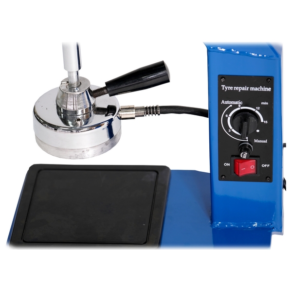Вулканизатор имеет один нагревательный элемент (500 Вт) диаметром 98 мм, который быстро достигает заданной температуры. Рабочая температура составляет 145-165 °C.