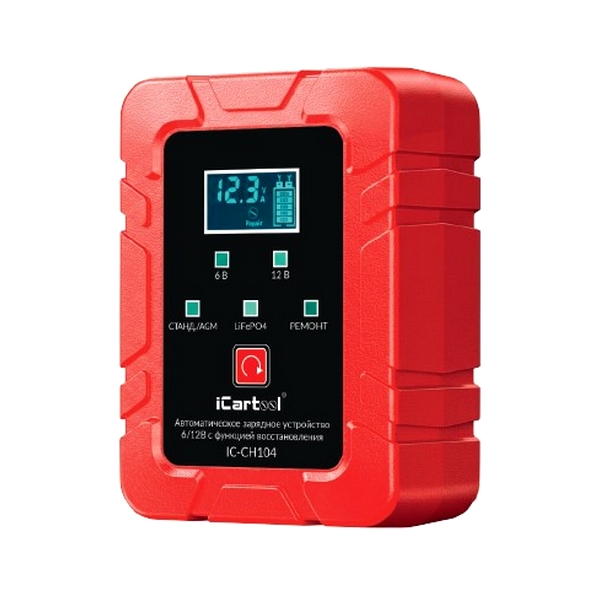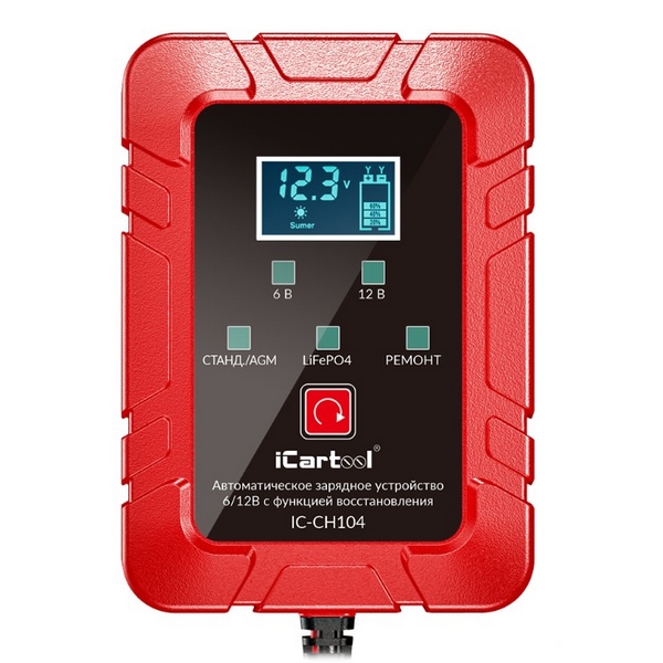 Автоматическое импульсное устройство iCartool предназначено для заряда и восстановления всех типов свинцово-кислотных аккумуляторных батарей с напряжением 6В / 12В и емкостью 4-30 Ач, включая AGM, GEL, а также залитых, кальциевых аккумуляторов глубокого разряда, VRLA, LiFePO4. Применяется при обслуживании АКБ легковых автомобилей, мотоциклетной, садовой и другой техники.