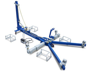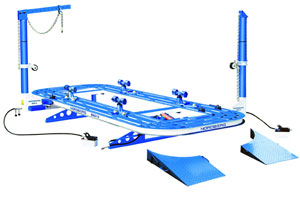 Две мощных силовых башни и стрела для вытяжки крыши с легко фиксирующимися надежными креплениями позволяют прилагать усилия в различных направлениях и обеспечивают возможность работы с любой частью кузова. Полный разворот на 360° может обеспечить любой угол приложения усилия. Башни передвигаются вдоль периметра стенда по рельсовым направляющим. Комплект из четырех зажимов быстро и надежно фиксирует автомобиль. Разнообразные виды зажимов и аксессуаров обеспечивают возможность проведения всех видов работ.