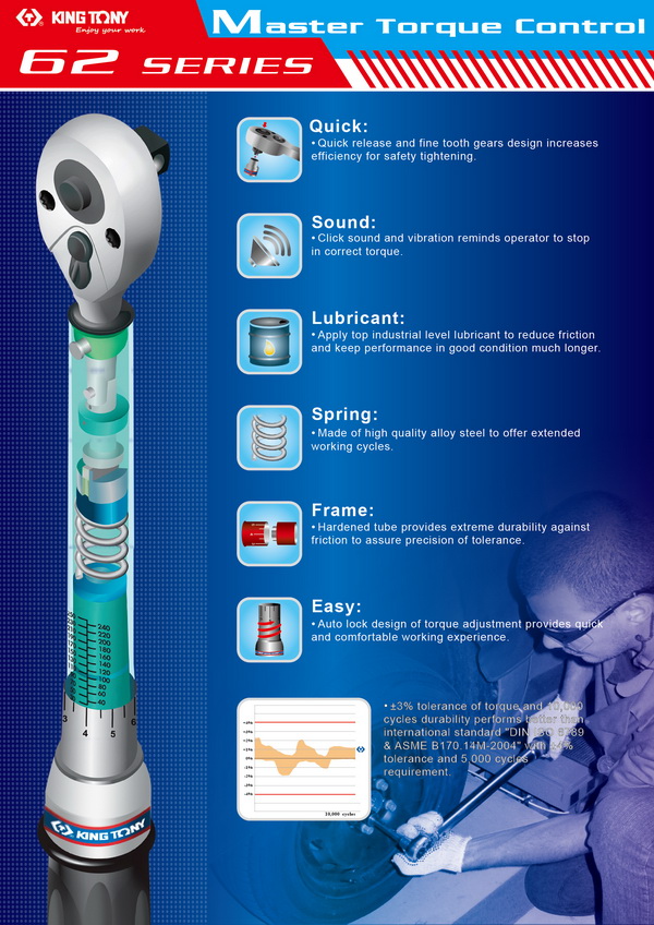 Как и весь ручной инструмент марки King Tony, и динамометрические ключи, и торцевые головки изготовлены из высокопрочной легированной стали и имеют пожизненную гарантию от производителя.